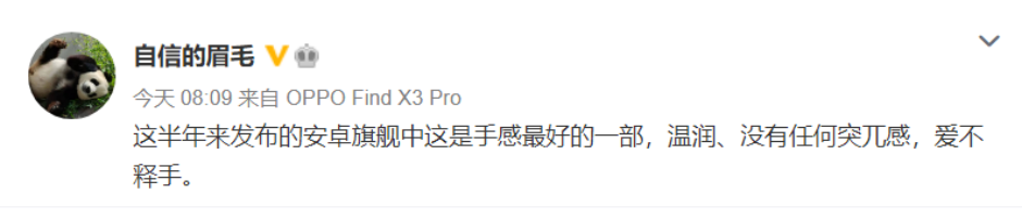 Find X3系列最大的特点是后壳不可能的曲面设计,相较于传统的单一曲线ID,OPPO Find X3系列在加工难度上更大,手感更佳。沈义人称,该机是这半年来发布的安卓旗舰中这是手感最好的一部,温润、没有任何突兀感,爱不释手。