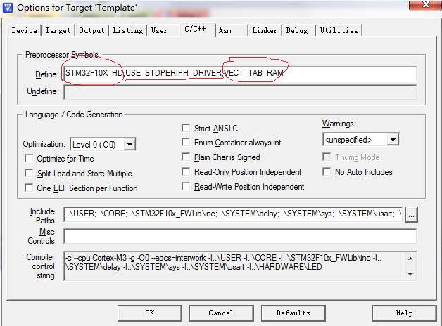 点击C/C++ 添加VECT_TAB_RAM 如图