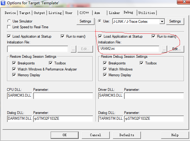 接下来,添加脚本文件,此脚本文件的作用是什么,目前我还不清楚,但是我觉得应该是改变其中断向量什么的吧,点击Debug,请看红色区域部分,点击Edit添加,