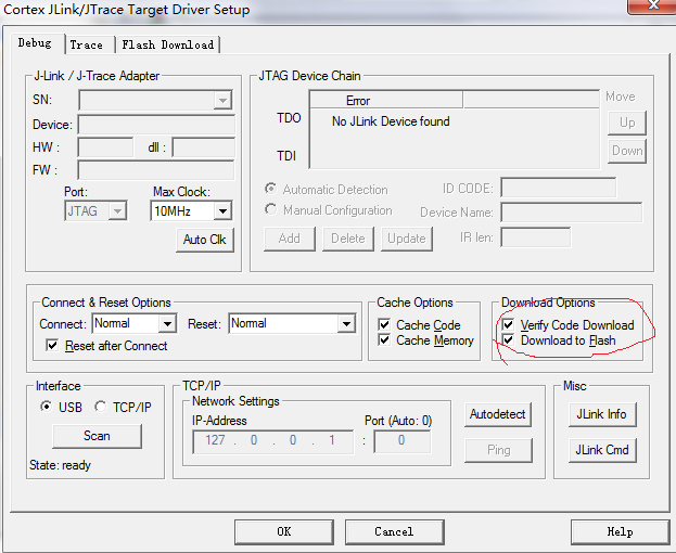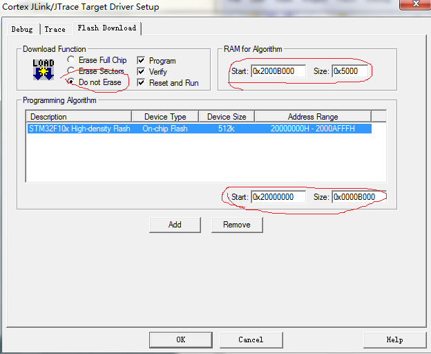 点击Setting可以看到Flash Download请看图:有三处红色区域要进行更改