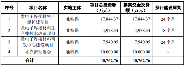募资4.08亿元,投建微电子焊接材料等项目