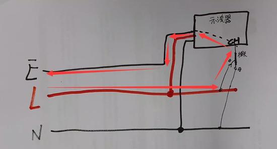 如下图所示测量市电的时候,就会造成对地线的短路,从而引发跳闸等问题。