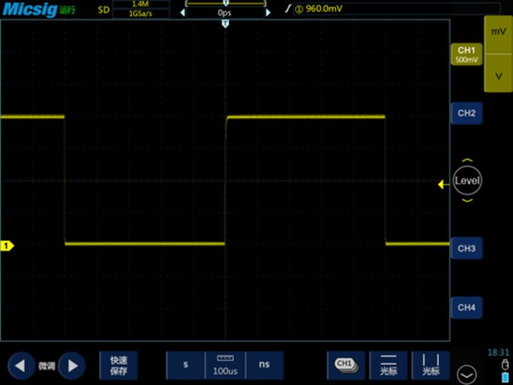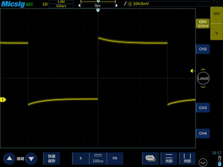 测量一个1KHz的标准方波(示波器一般会自己输出这个信号),正常的显示如下:
