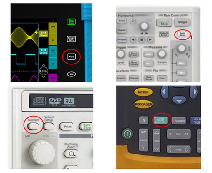 当我们要测试一个信号时,最简单的测试办法,就是点一下示波器上的“Auto”,不同的示波器这个按键的名称有一些差异,例如“AutoSet”、“自动”、“自动设置”等等。