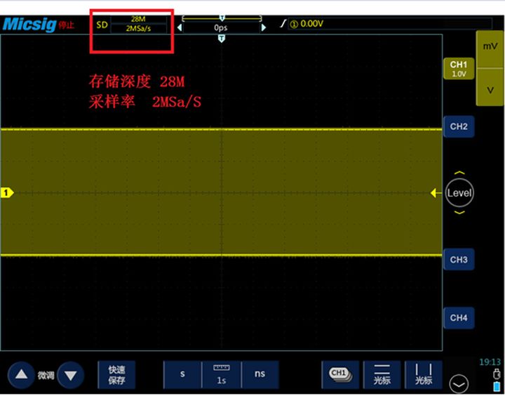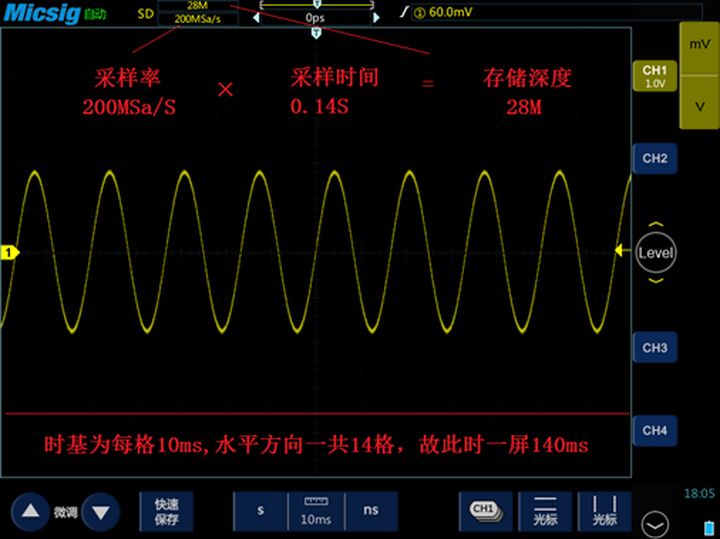 用28M存储深度的示波器,截取一屏14S的信号