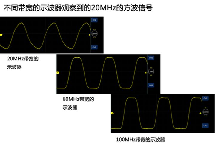 下图是示波器带宽对方波测试的影响,对比比较直接