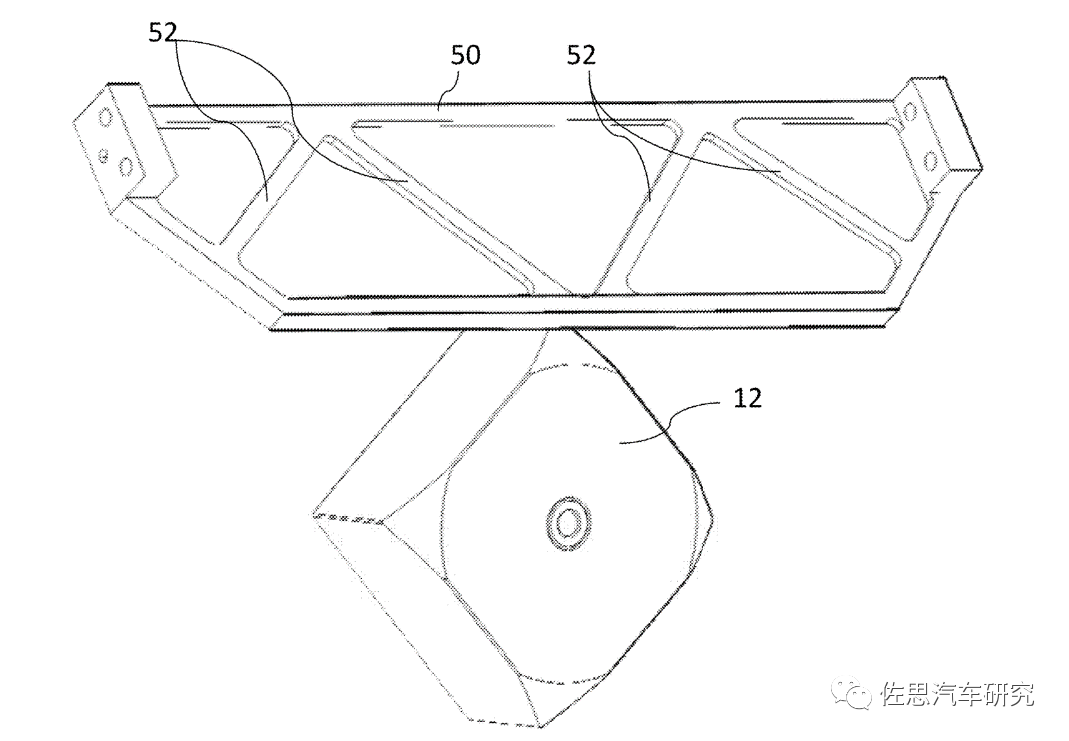 54上贴着三角形反射镜52,与水平扫描器12互相配合。三角形最长的一边长度与水平扫描器的一边长度相同。