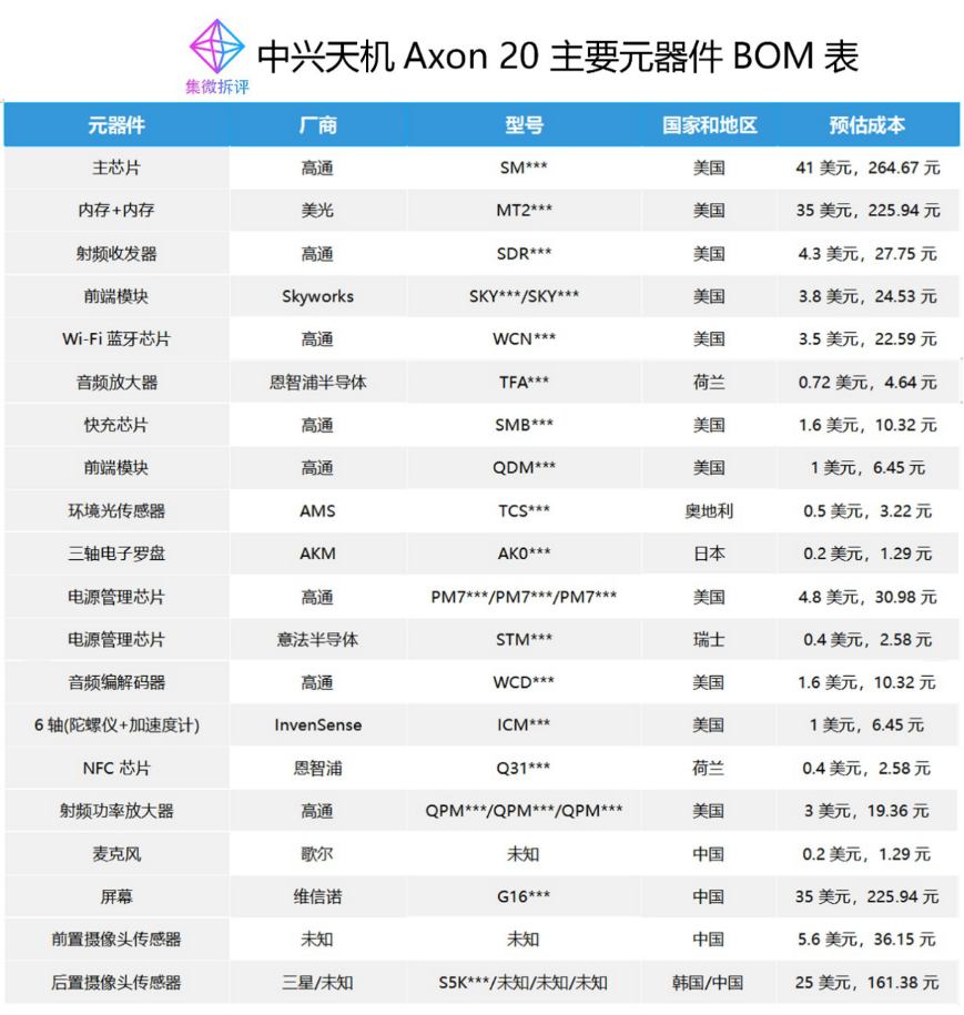 2021年03月03日 | 中兴天机Axon 20 BOM表揭秘:芯片市场或迎来洗牌