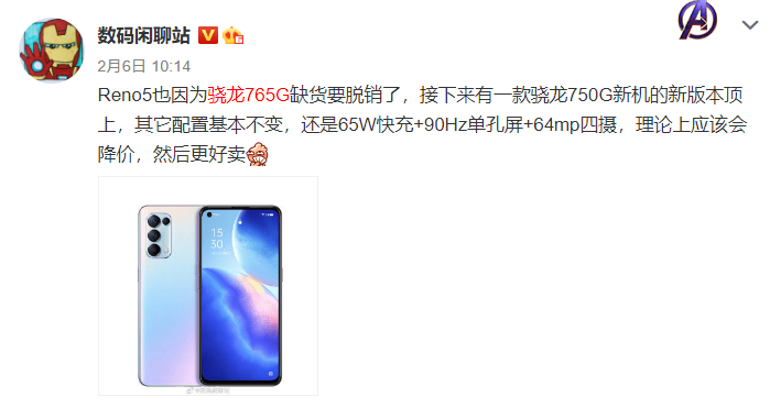 虽然骁龙765G性能表现不佳,但搭载这颗芯片的终端产品表现不错,首发机型Redmi K30性价比很高,vivo S7凭借出色的自拍体验广受欢迎,尤其是2020年末上市的OPPO Reno5,拿下单周销量冠军。在终端产品的带动下,骁龙765G还是卖到缺货。此外,高通在发布骁龙888旗舰处理器之后,骁龙7系则并没有跟进更新,给了骁龙765G足够的生命周期。