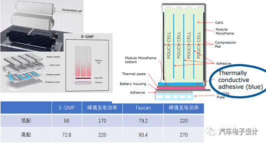 根据两个不同的电池版本的功率,根据官方发布的数据,58kWh的峰值充电功率为170kW,72.8kWh的峰值功率为220kW。从目前的情况来看,有可能E-GMP在Taycan的基础上也做了调整,现代起亚的E-GMP和保时捷PPE在电芯尺寸规格和容量上不一致以外,整体的结构和电芯的配方,如软包电芯的散热等都是相似的。
