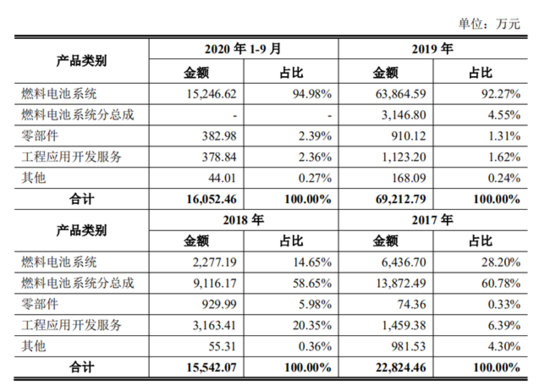 由上表,重塑股份主营业务收入主要为燃料电池系统、燃料电池系统分总成及零部件产品的销售收入。同时,为满足不同客户下游应用场景的动力需求,重塑股份为部分客户提供如样机开发等工程应用开发服务。