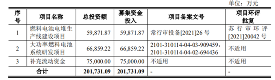 拟募资20.17亿元扩产燃料电池等项目