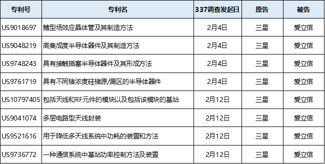 作为回应,2月4日、12日,三星先后两次针对爱立信发起337调查申请,所涉专利同样是8项。