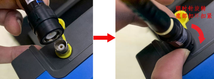 第一步:示波器开机,然后将探头与示波器相连