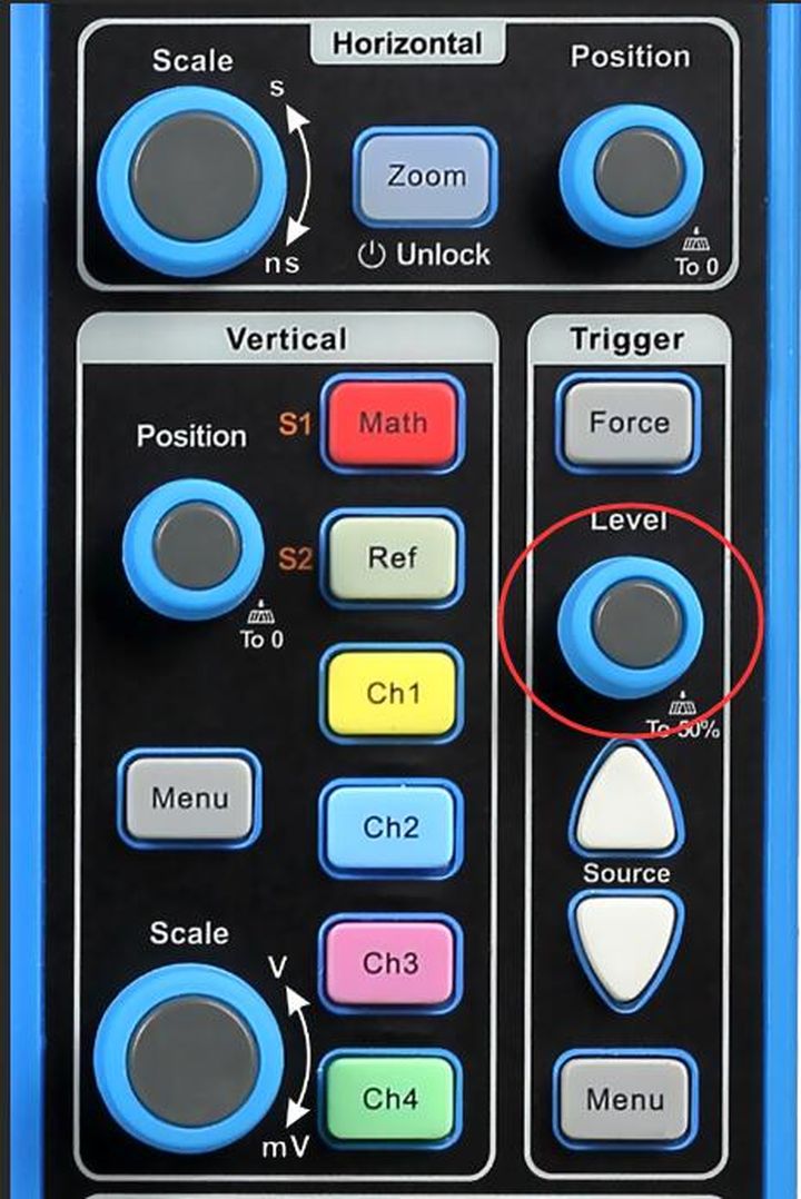 这就是波形显示不正常的第二个原因:触发电平没有调整到合适位置。