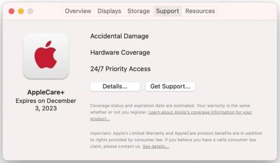 同时,“关于这台 Mac。”这个页面增加了很多新的功能,包括了电子质保书,并检查自己设备的保修。这个页面类似于 iOS “设置”应用程序中的 AppleCare 菜单,允许用户申请维修,购买 AppleCare 计划以及检查其能够覆盖的硬件范围。