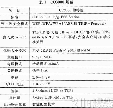 CC3000规范如表1所列。