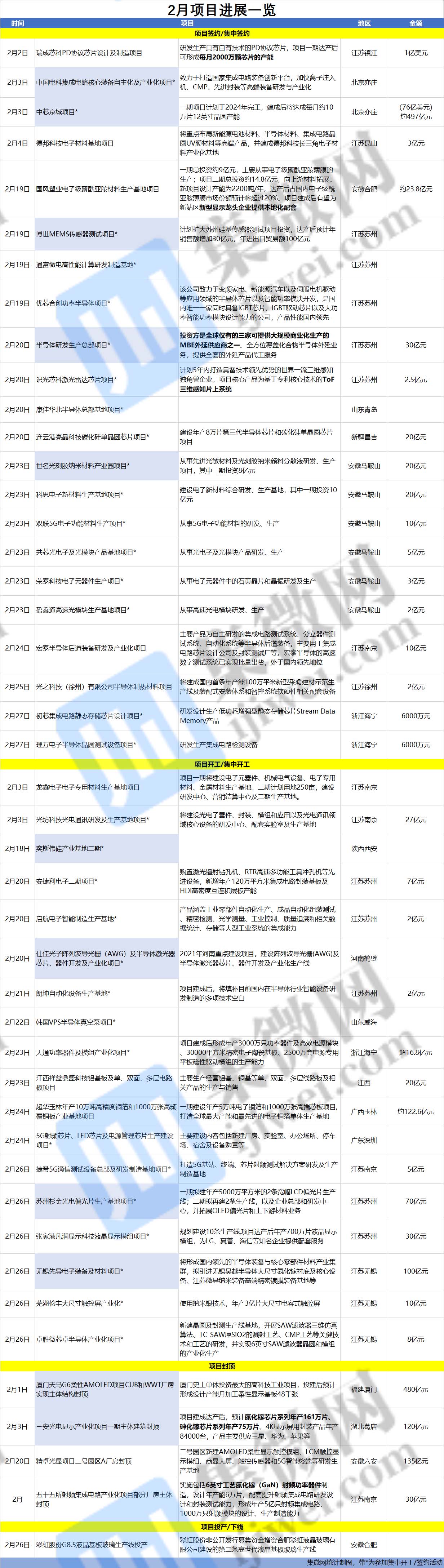 集微网消息 2021年2月集成电路领域的项目进展概况: