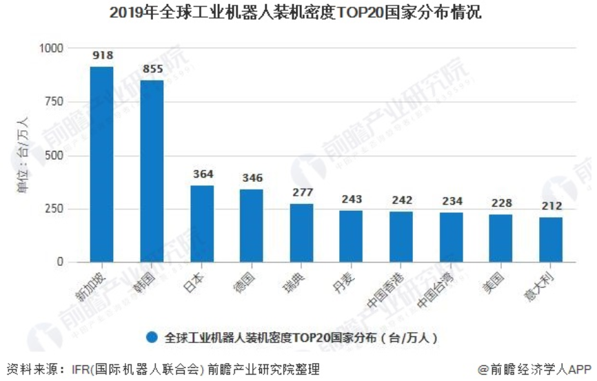 新加坡和韩国工业机器人装机密度领先全球