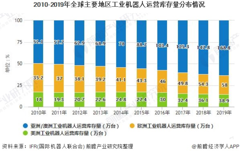 亚洲/澳洲工业机器人保有量最大