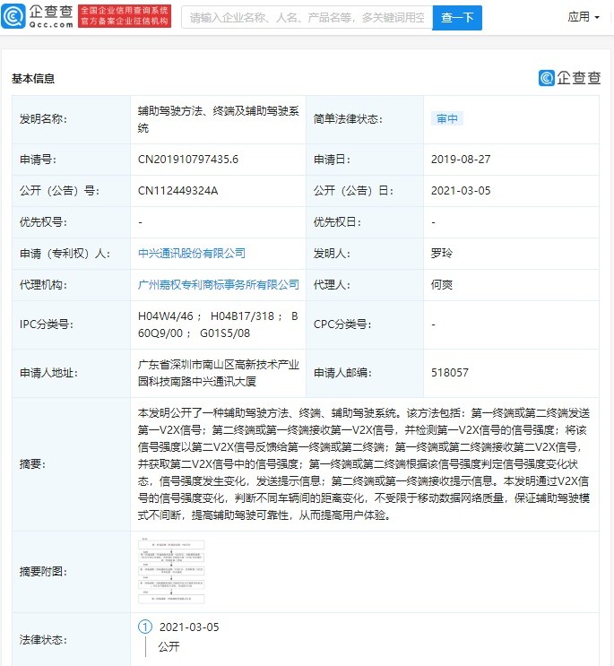 2021年03月05日 | 中兴通讯公开 “辅助驾驶系统”相关专利,可提高辅助驾驶可靠性