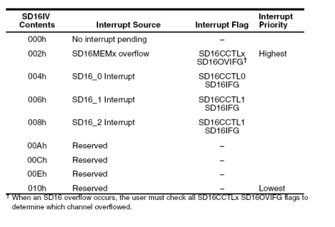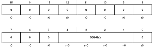 SD16IVx位15-0 Sigma-Delta ADC具有一个中断向量,中断向量寄存器SD16IV辅助处理