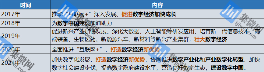 从2017年的“促进”数字经济加快成长,到2019年“壮大”数字经济,再到2020年与2021年的打造数字经济“新优势”。数字经济发展的“使命感”越来越重。
