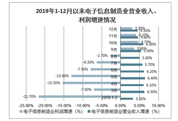 2019年1-12月电子信息制造业营业收入及利润增速情况(图源:中国产业信息网)