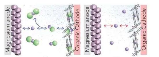 它不但无法稳定在负极之内,镁还会在负极发生反应,形成固体电解质界面膜(SEI),进一步阻碍镁离子在电极和电解液之间的扩散。一旦这层界面膜出现,电池性能会迅速下降。