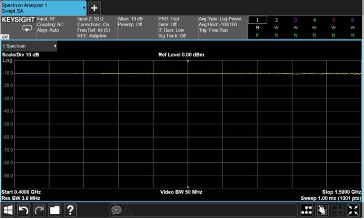 如果您只是打算快速进行几次随机检验,例如在生产线中验证几个器件的质量,您可能倾向于设置较宽的分辨率带宽。分辨率带宽决定了扫描测量频谱的扫宽。在较宽的分辨率带宽下,您可以实现快速扫描和更快速的测试,但是测量的详细程度和准确性会受到影响。