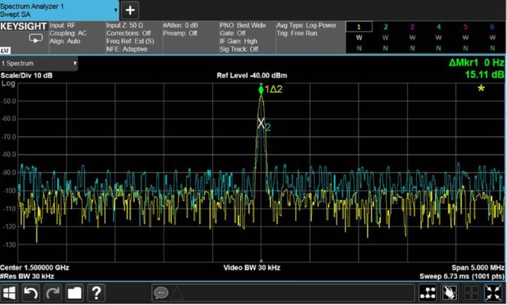 高级技巧:您还可以使用双迹线来判断分析仪中产生的失真是否会影响测量。关于这一过程的详细说明,请参阅《信号分析测量基础知识应用指南》中的“识别内部失真产物”部分。