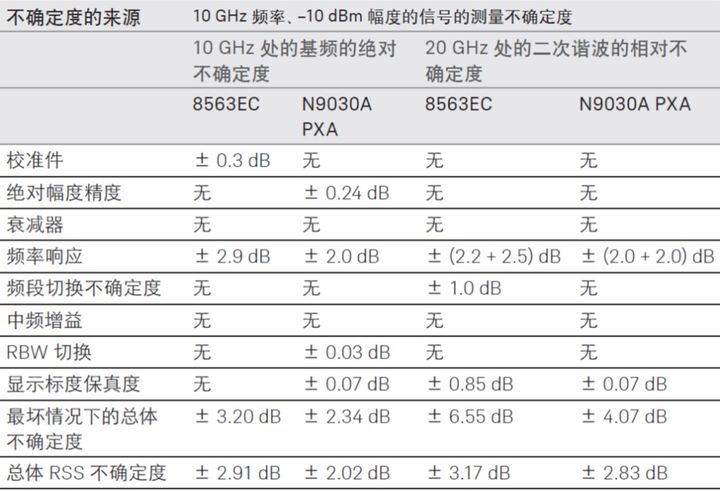 其他不确定度,像 RBW 切换不确定度或基准电平精度,都是对两个信号同时起作用,在相对测量过程中可不予考虑。