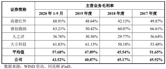 富吉瑞认为,行业的定制化特点、公司产品及业务定位差异以及公司发展阶段的差异是其毛利率低于同行的主要原因。