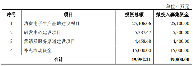 募资4.98亿元,投建消费电子生产基地建设等项目
