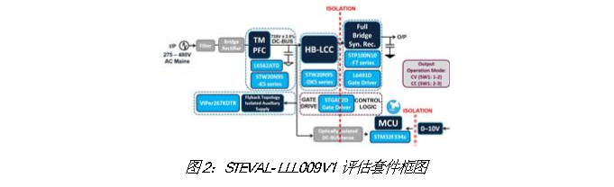 图2是STEVAL-LLL009V1评估套件的框图,该评估套件嵌入了原副边需要的拓扑电路和元器件。