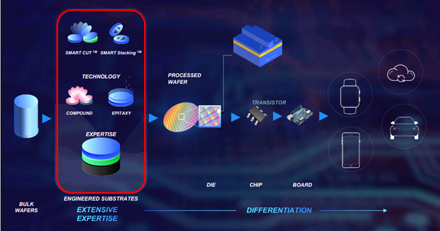 作为创新型半导体材料的设计、生产者和优化衬底的头部厂商,Soitec拥有独特的SMART CUT(智能切割)和SMART STACKING(智能堆叠)技术,为客户设计和交付创新型优化衬底解决方案,为他们的产品的赋能。