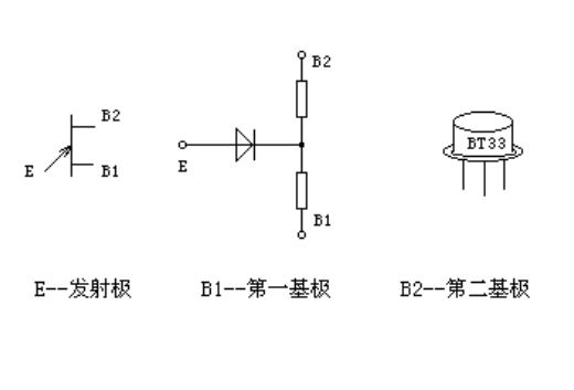 单结晶体管又叫双基极二极管,它的符号和外形见附图。