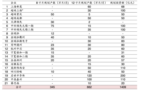 2020年之前,国内主要是以8寸晶圆厂为主,随着大基金的持续投入和地方政府的配套资金支持,12寸晶圆厂积极扩建。