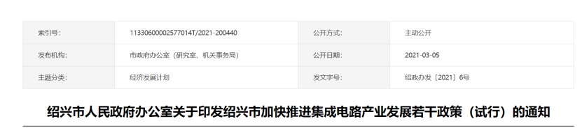 2021年03月10日 | 最高补贴3000万元,绍兴加快推进集成电路产业发展政策出台