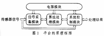 目标探测通用平台的主要功能是目标信息的获取、检测、对目标位置信息进行相应的定位算法处理和后续控制。此平台主要由4个部分组成:信号采集模块、算法处理模块、系统控制模块和电源模块。平台的原理框图如图1所示。