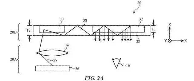 在这份名为“用于显示器的光学系统”的专利中,Apple提到使用波导系统将光线从光学系统传输到至用户的眼睛。也就是说波导取代了显示器,利用重定向的光线将图像投射到用户的眼睛。