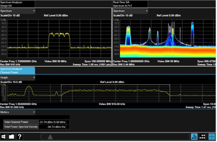 2. 分析干扰信号:无论是内部产生的干扰,还是来自被测器件(DUT)外部的干扰。选择具有快速扫描、频谱图显示和 RTSA 功能的信号分析仪,提高您发现干扰信号的能力。如果信号分析仪能够升级,您可以在需要时添加新功能。