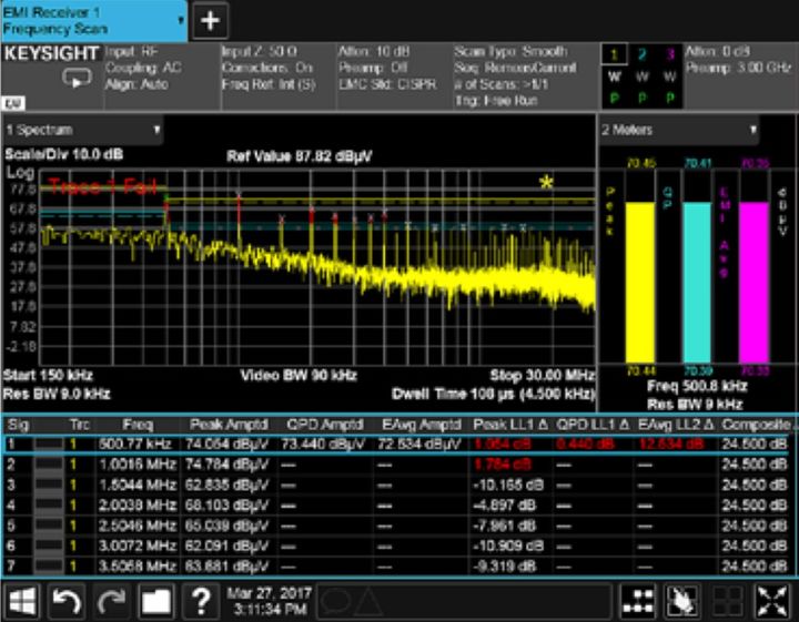 图 2.5:进行 EMI 测量时,经常需要扫描和搜索超出限制的信号。