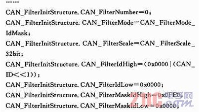 ②CAN过滤器的初始化子程序。