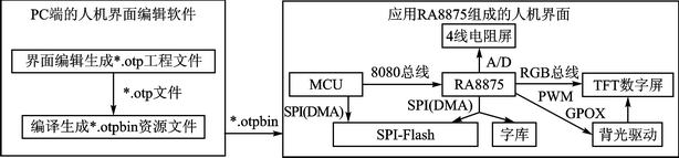 如图3所示,本系统由两部分组成,分别为PC端的人机界面编辑软件和应用RA8875组成的人机界面。