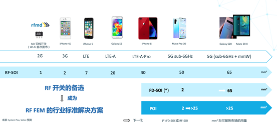 按照SOI衬底晶圆市占率来计算,占比为6成的RF-SOI(针对射频的SOI)才是整个家族的支柱。