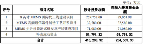 此前,赛微电子发布《2020年度向特定对象发行A股股票预案》称,公司本次向特定对象发行股票数量不超过发行前股本总额的30%,即不超过191,736,461股(含本数),募集资金总额不超过234,503.30万元,扣除发行费用后的募集资金净额拟投入8英寸MEMS国际代工线建设项目、MEMS高频通信器件制造工艺开发项目、MEMS先进封装测试研发及产线建设项目以及补充流动资金。