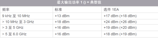 注1:20°C -30°C 之间引用的技术指标。对于超出该范围的温度,最大输出功率一般每°C降低 0.01 dB。