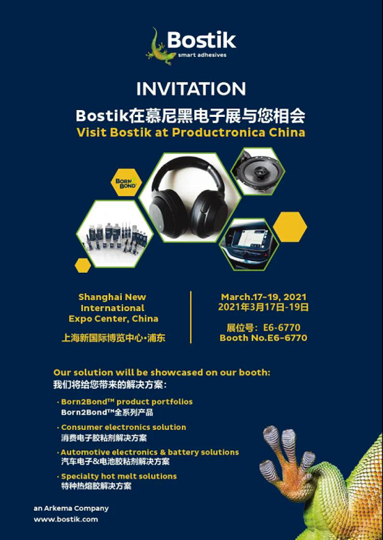 2021年03月16日 | Bostik将携整体解决方案亮相上海慕尼黑电子展