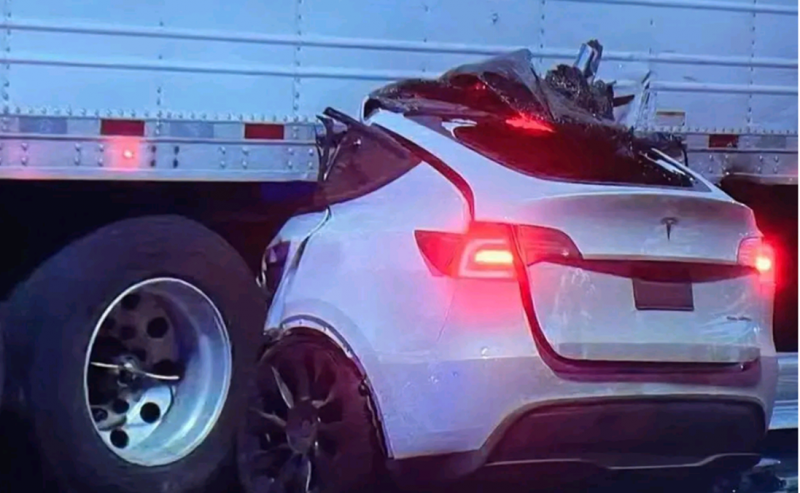 3月11日,美国底特律市,特斯拉Model Y又双叒叕撞上白色大货车,车顶被削,现场十分惨烈。